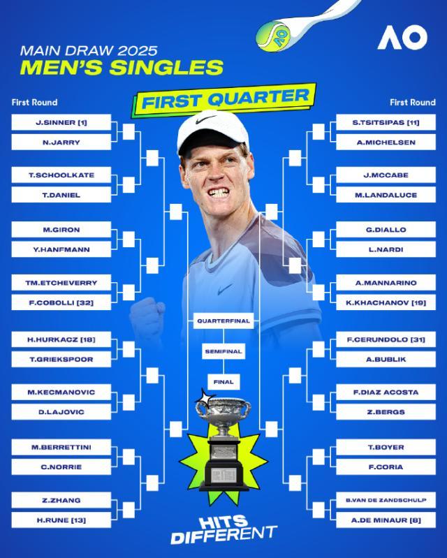 九游体育官网-澳网德约阿卡恐八强遭遇 辛纳卫冕之路一马平川?